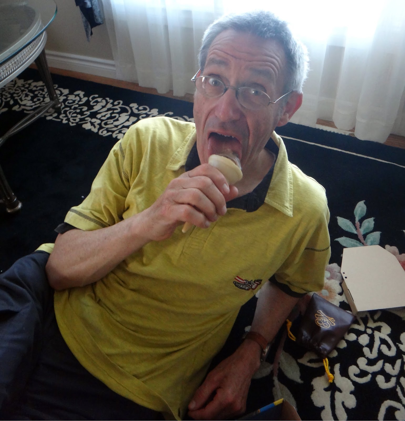 Grand-Père's talent was to appreciate everyone and everything. Here's a picture of him enjoying peanut butter ice cream...